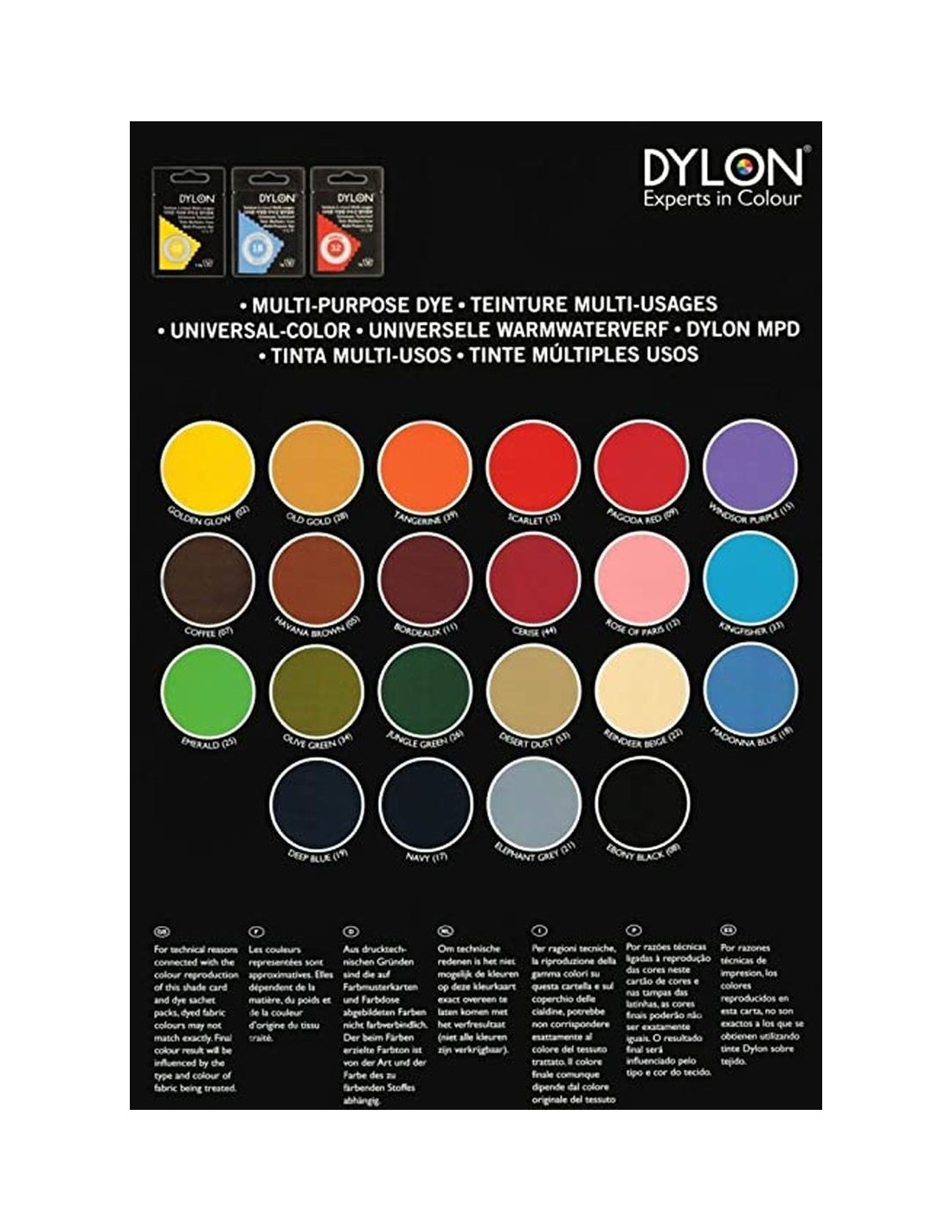 Dylon tinte ahora se llama n.mor multiusos para agua caliente puede hervirse a fuego lento. Esta formulado especialmente para teñir nylon y prendas que tengan Lycra Elastane (tejidos elásticos) y también fibras naturales, algodón, lino, viscosa, lana y seda. Es ideal para teñir prendas pequeñas como mallas, pantys, tops, ropa interior etc. Una latita de tinte es suficiente para teñir 250 g. de tejido pesado en seco. Si el color original del tejido es más oscuro que el color que desea lograr, deberá usar primero el decolorante Dygon (NO EN TEJIDOS DE COLOR SÓLIDO) en fibras naturales o nylon para devolver el tono natural del mismo y dejarlo listo para teñir. Ideal para artículos pequeños y ropa interior. Dylon multiusos no es tinte de color sólido.