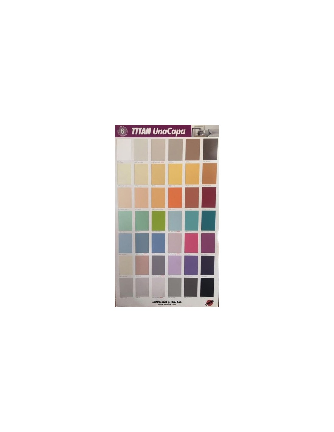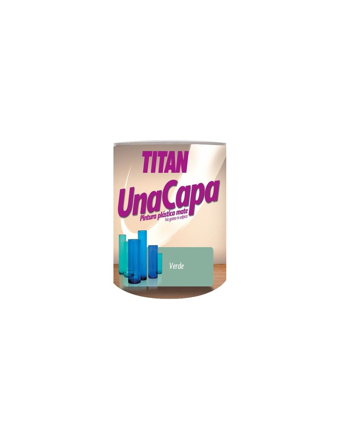 TITANLUX UNA CAPA Acabado: MATE Color: VERDE 6350 RGB(182.97, 206.28, 177.11) Base: AGUA Pintura plástica mate lavable para la decoración de paredes y techos de interior. Proporciona a la superficie pintada una alta cubrición y un blanco luminoso. Esta pintura no gotea ni salpica durante su aplicación. Cubre con una sola capa, ¡nunca antes había sido tan rápido! RECOMENDACIONES GENERALES: Remover bien en el envase. Las superficies a pintar deben estar limpias, secas y consistentes. SUPERFICIES NO PREPARADAS: Aplicar una primera capa diluida con 10 - 15 % de agua, aplicando una segunda sin diluir. Sobre superficies en mal estado: sanear todas las zonas afectadas, eliminando todo el material que no esté bien adherido y consistente, limpiando toda la suciedad y el polvo que pudieran tener. Para consolidar sustrato y homogeneizar porosidad o sobre pinturas al temple, a la cola, a la cal o en superficies donde aquellas se hayan eliminado: es recomendable aplicar una primera capa de Selladora TITAN o Fijador Hidrolín. 2 MANTENIMIENTO SUPERFICIES YA PINTADAS EN BUEN ESTADO: Aplicar directamente la pintura sin diluir previo lavado o cepillado. MANTENIMIENTO SUPERFICIES YA PINTADAS EN MAL ESTADO: Sanear todas las zonas afectadas eliminando las viejas pinturas y resto de materiales que no estén bien adheridos. Limpiar toda la suciedad y el polvo que pudieran tener. Una vez secas y consistentes, proceder como en superficies no preparadas. Alta cubrición. No salpica ni gotea. Lavable. Secado en 20-60min. Superficies aplicación: PAREDES, TECHOS, Aplicación Interior: SI; Aplicación Exterior: NO RENDIMIENTO 7-8,5 m2; SECADO 20-60 MIN; REPINTADO 6-8H